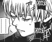 Later, Kaneki tries to talk to Touka about Yoriko, but he is unable to bring up the topic. Touka tells him about the child instead, and Kaneki isn’t surprised about the news (because he already figured it out in the previous chapter). His main concern at the moment is about Yoriko’s execution, and how Touka is probably deliberately ignoring the fact. His inner voices emerge, telling him to choose what to do about it. Kaneki then decides to do nothing about Yoriko, in response to Touka’s determination. He asks her about the child’s due date, and says that he’s happy.