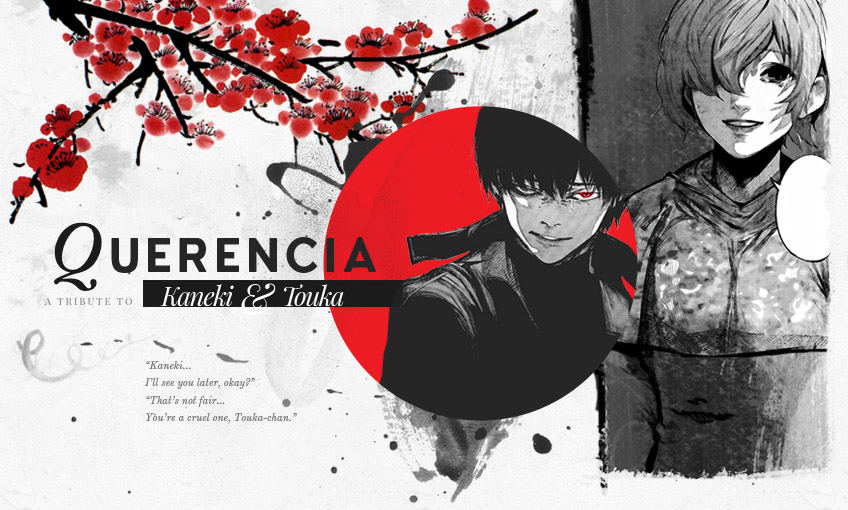 Greetings, dearest visitor. You have found Querencia, a tribute to Kaneki Ken and Kirishima Touka (otherwise known as Touken or Kanetou by the fandom) from the Tokyo Ghoul series by Ishida Sui. The term ‘Kanetou’ is used by Japanese fans, but ‘Touken’ is more commonly used by international fandom, therefore the latter form will be used throughout this site. This site also serves as the approved fanlisting for their relationship. Feel free to join if you’re a fan!